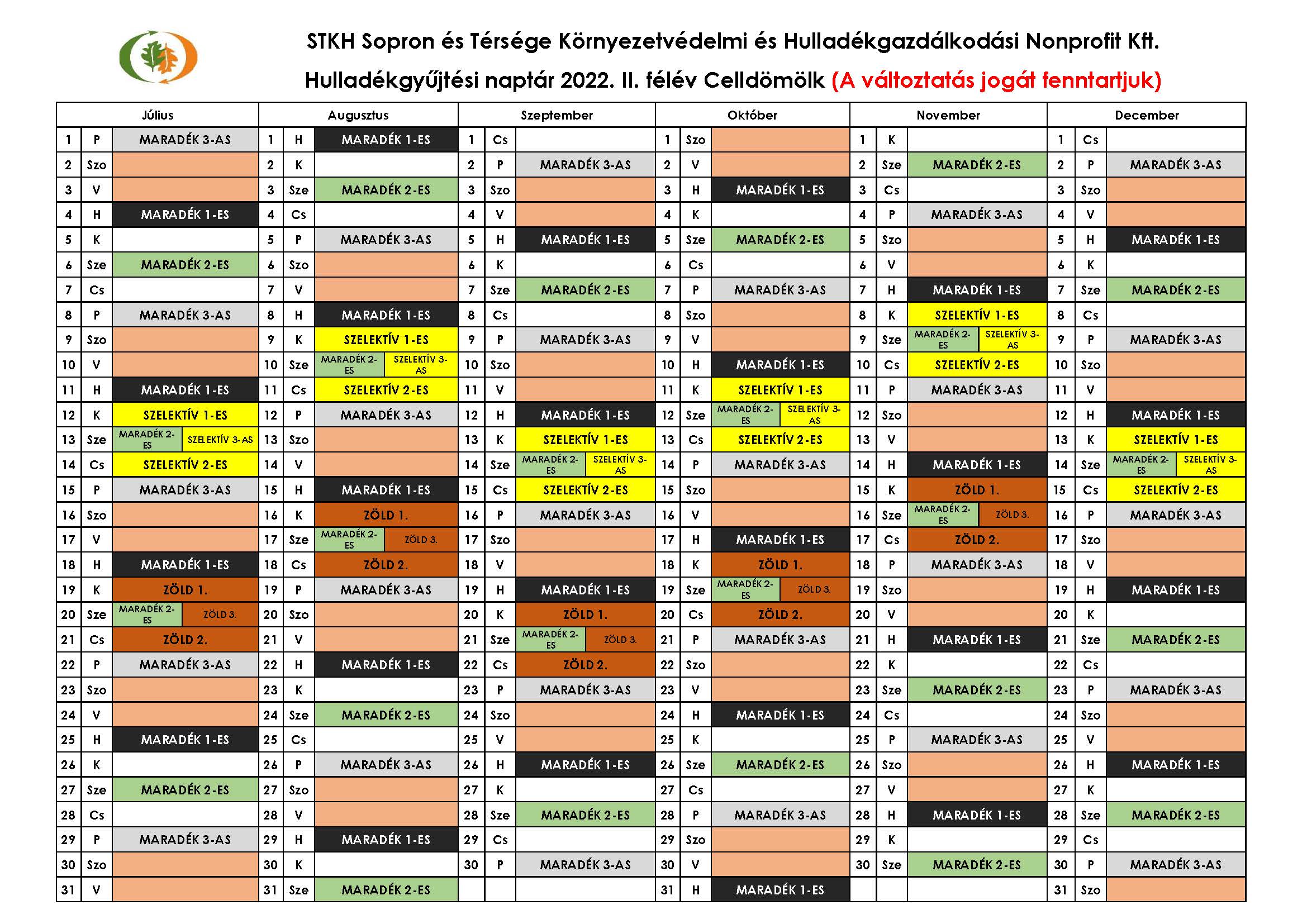 STKH Hulladéknaptár 2022. II. félév