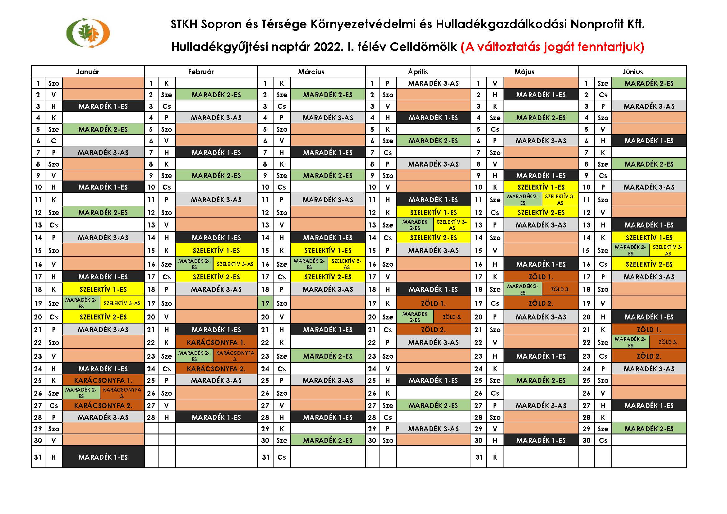 STKH Hulladéknaptár 2022. I. félév