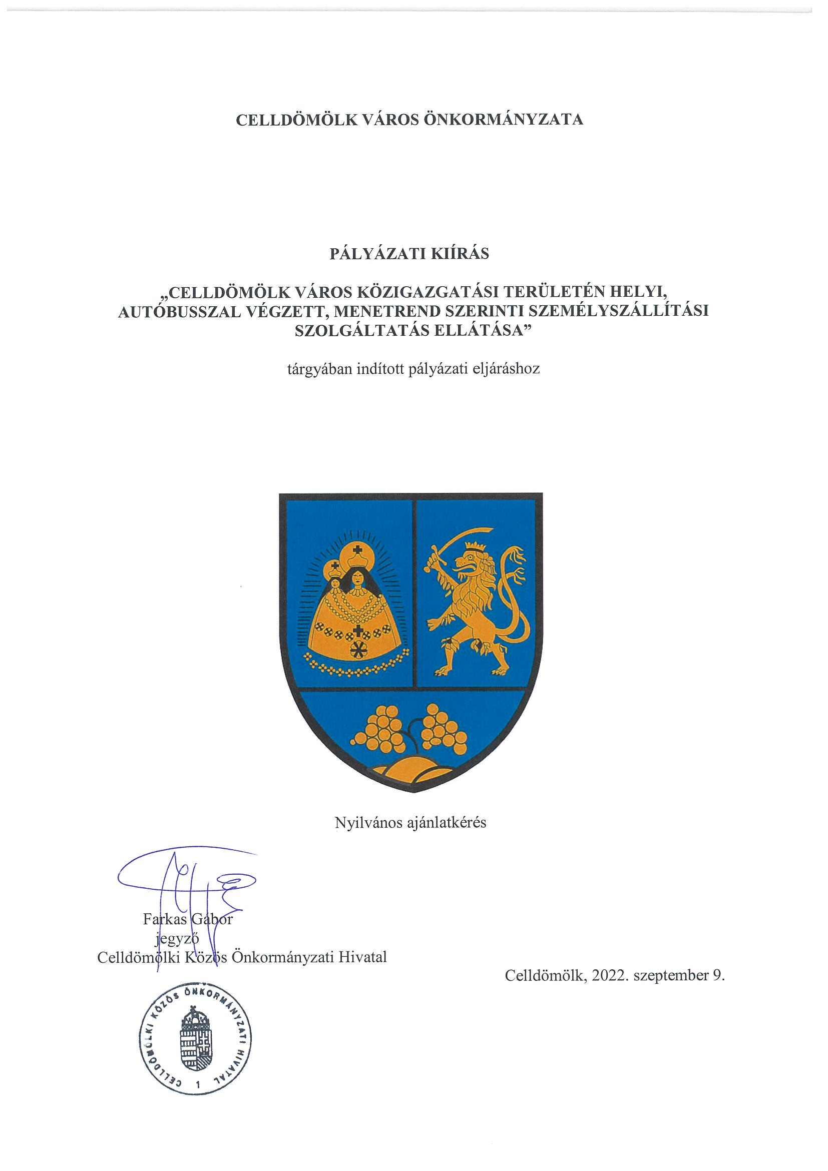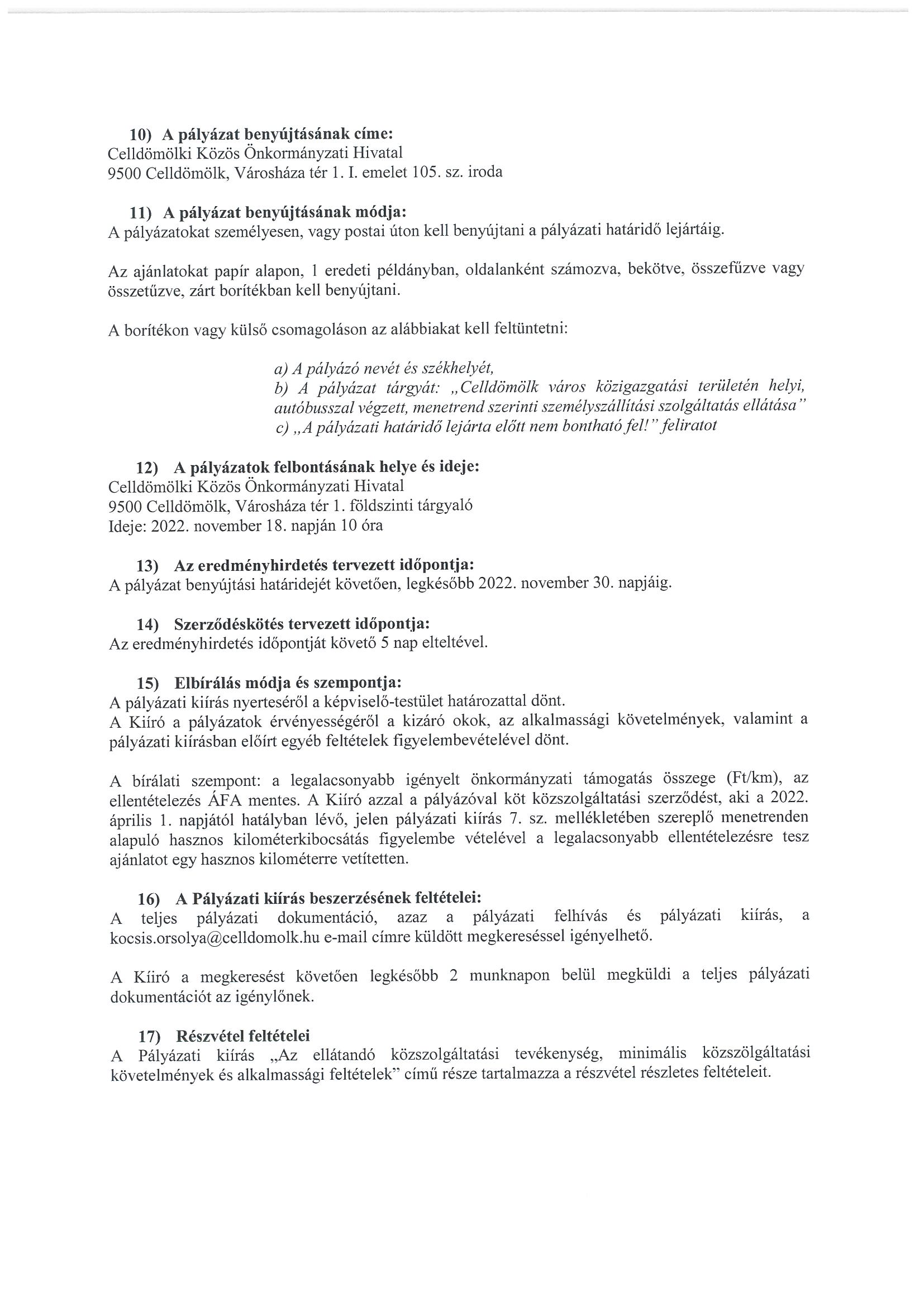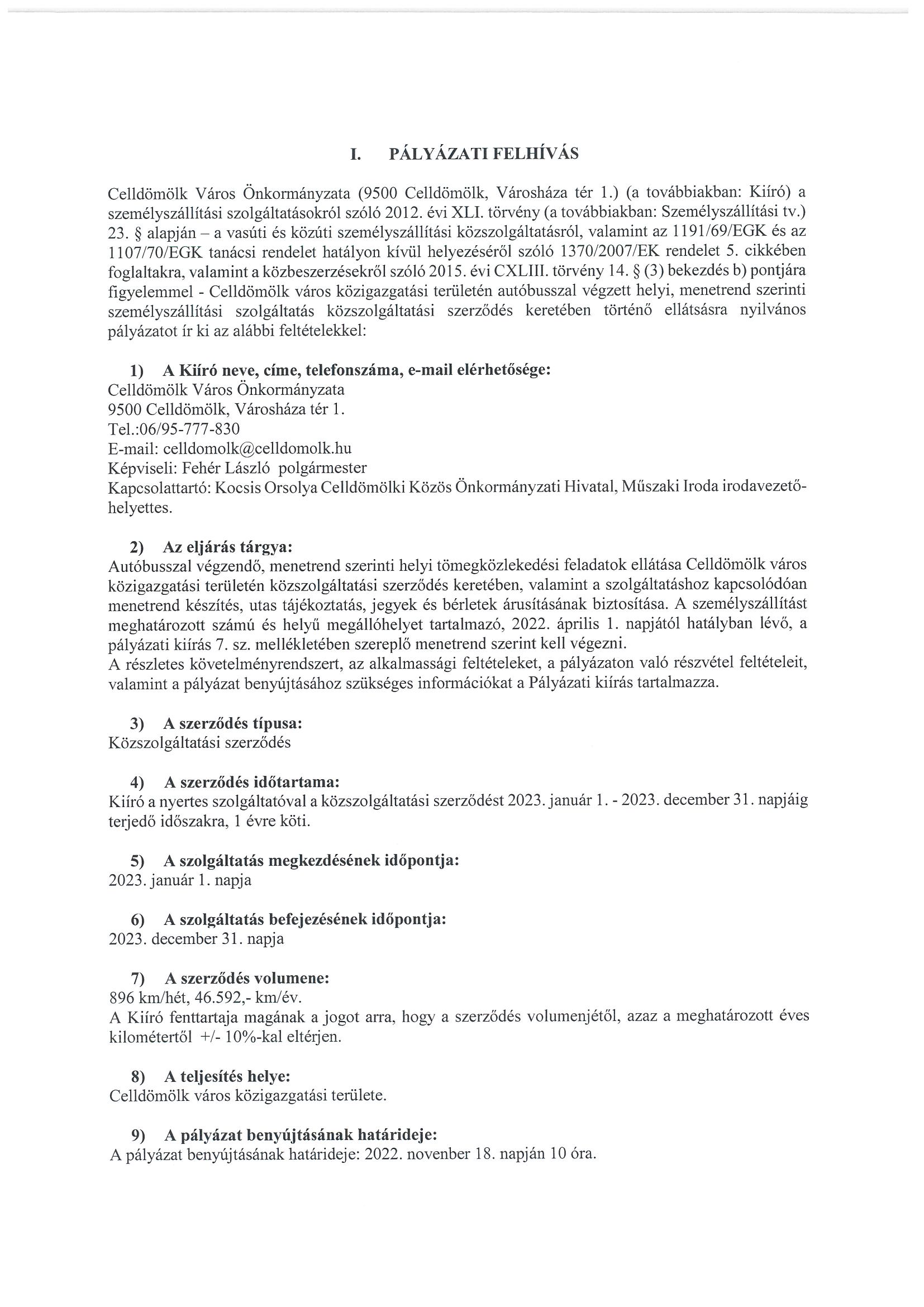 Pályázati felhívás - helyi, autóbuszos személyszállítás