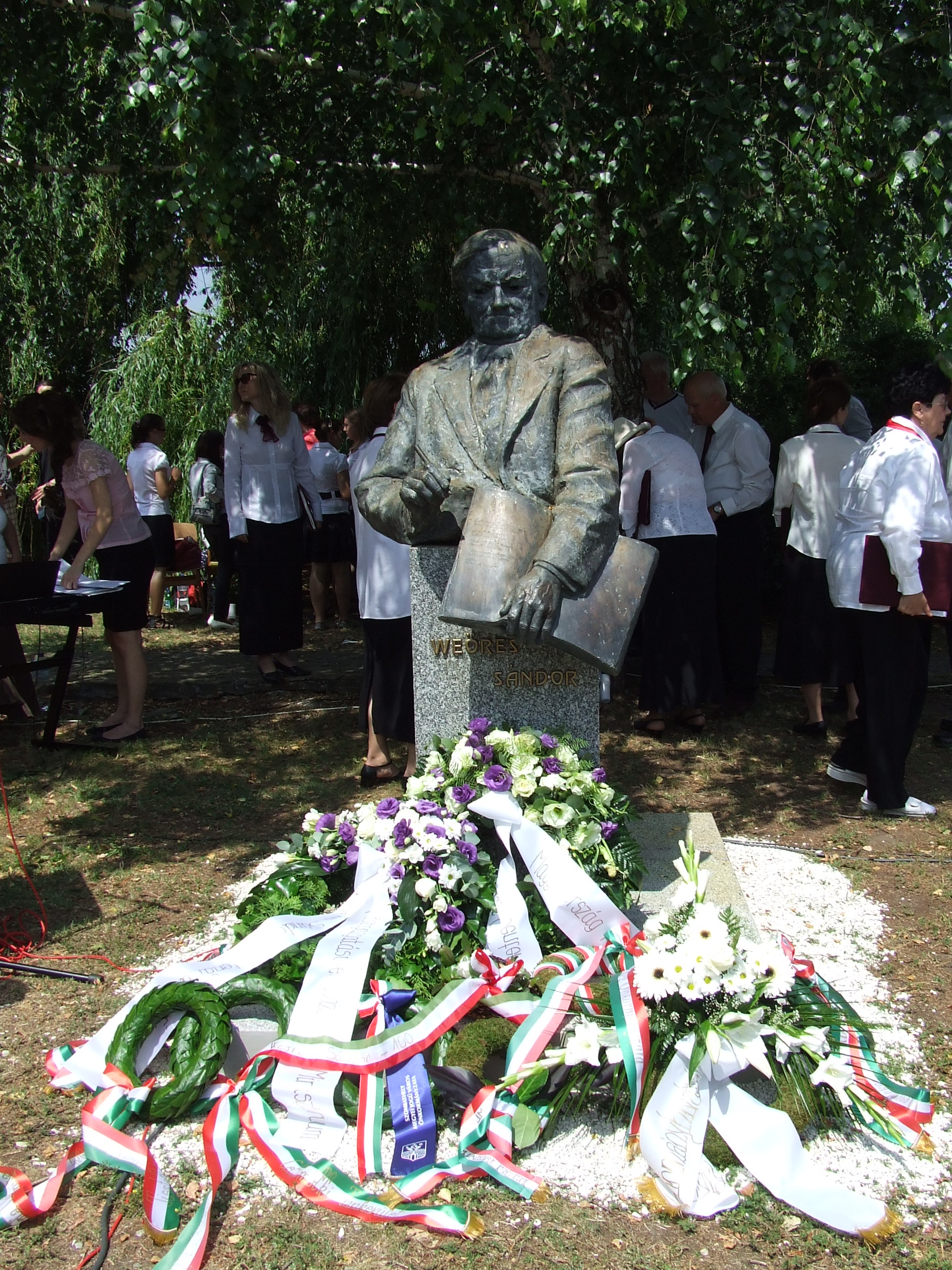 „Weöres Sándort a neve is a verselésre predesztinálja” – mondta dr. Fűzfa Balázs, a Nyugat-magyarországi Egyetem docense, aki a „Weöres-kultusz” egyik legelhivatottabb ápolója. S hogy a kötődése még szorosabb legyen a költőhöz, Csönge Község Önkormányzata a megemlékező ünnepségen hivatalosan is tiszteletbeli csöngei polgárrá fogadta. Az egyetemi tanár a vizsgaidőszak vége felé rendszeresen táborokat is szervez a szülőfaluba. Az alkotótábor résztvevői verses-zenés irodalmi műsoron keresztül mondták el, milyen gondolatokat ébreszt bennük Weöres egy-egy sora, majd az emlékház udvarán álló, életnagyságú Weöres Sándor bronz szobor koszorúzásával ért véget az ünnepség. A zárógondolatokat Rozmán László, a celldömölki tankerület igazgatója mondta el.