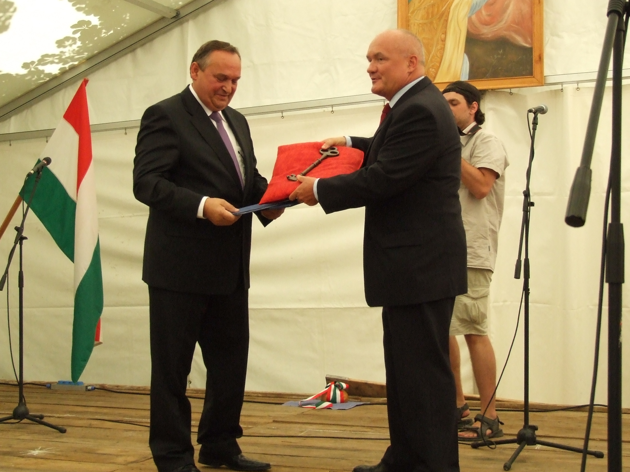 Ökumenikus istentisztelettel vette kezdetét a városavató ünnepség Jánosházán, ahol több százan gyűltek össze, hogy tanúi legyenek a történelmi eseménynek. A hivatalos ceremónián dr. Hende Csaba, honvédelmi miniszter nyújtotta át Keresztes István polgármesternek a huszárok kíséretében hozott városi jelképeket, a köztársasági elnök által aláírt alapító okiratot és a város kulcsát.