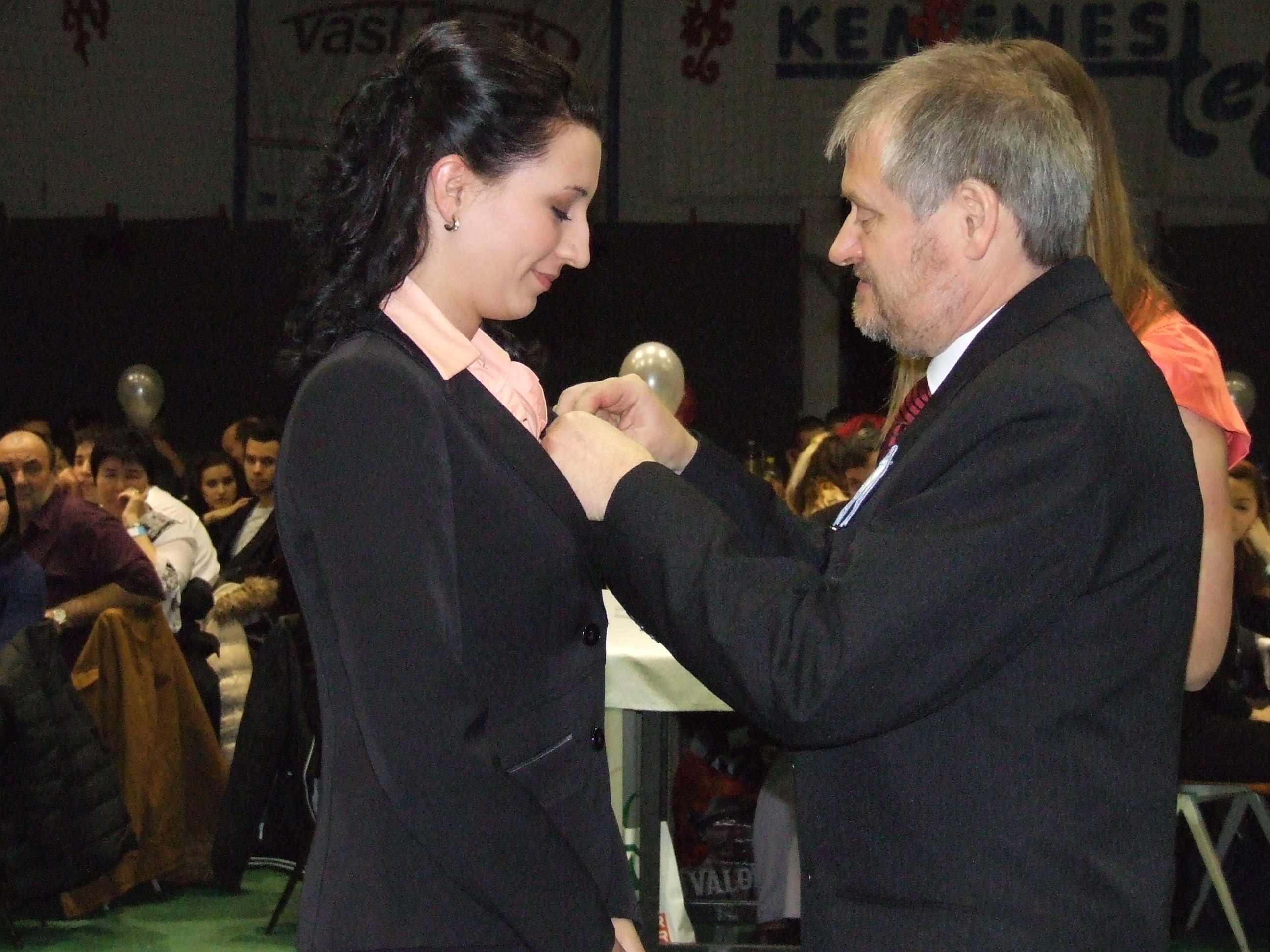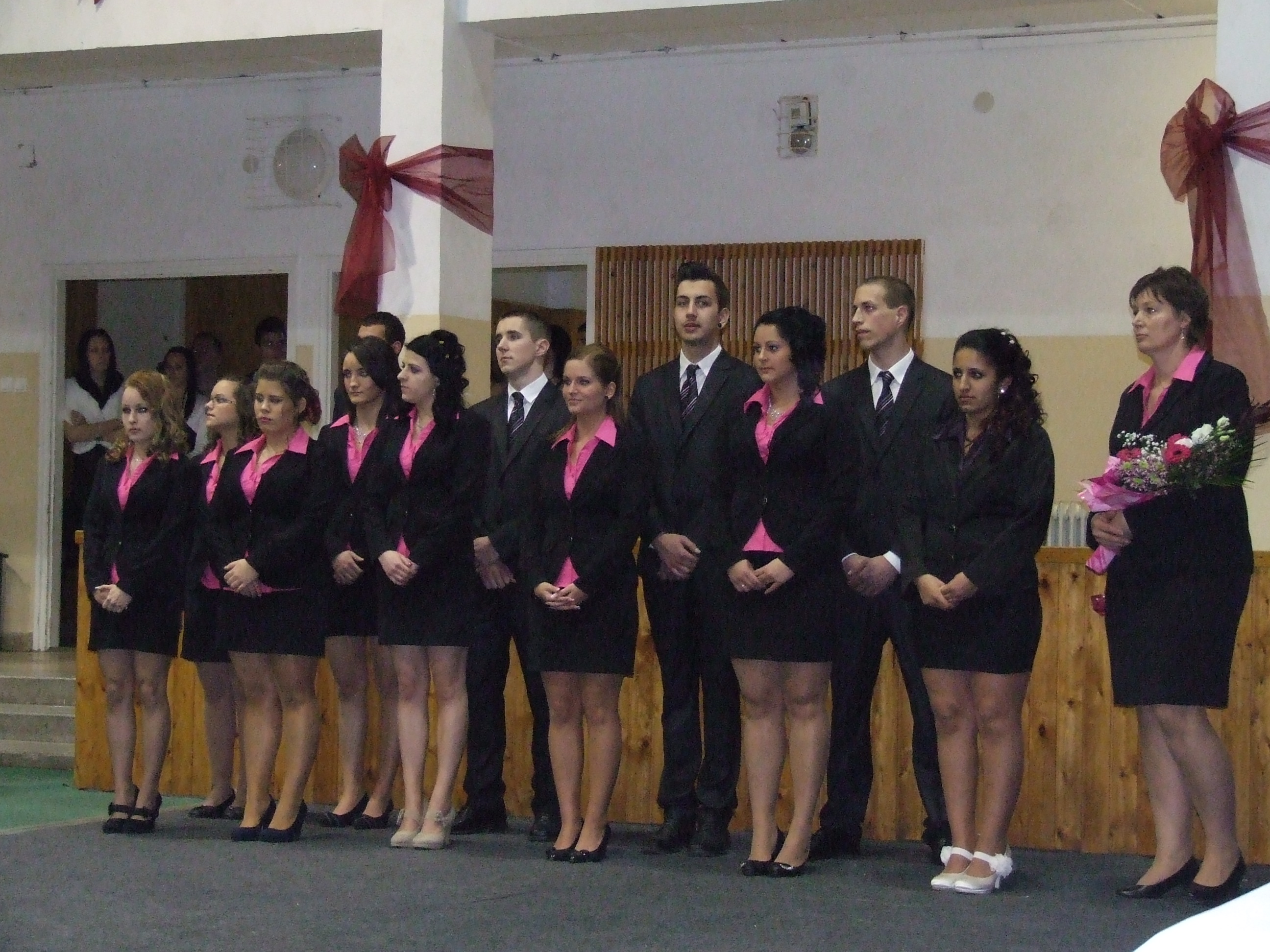 Őszintén reméli, hogy a közös munka meghozza gyümölcsét és mindenki örömmel emlékszik majd az itt eltöltött évekre. A beszédek után hagyományokhoz híven megtörtént az ünnepélyes szalagfeltűzés, amely a felnőtté válás első lépéseit jelképezi a diákok számára. Ezt követően táncos produkciókkal illetve az osztályokról készült kisfilmekkel szórakoztatták a közönséget, majd végezetül az angolkeringő bemutatása zárta a műsort.