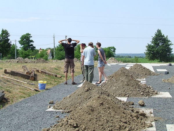 Habár a tavalyi évben megnyitott Kemenes Vulkánpark épülete több építészeti díjat is magáénak tudhat, ugyanakkor közvetlen környezetének kialakítására, látogatóbarátabbá tételére mindeddig nem került sor. Az elmúlt év során azonban a Látogatóközpont a BME Urbanisztika tanszékével fogott bele egy közös projektbe, melynek keretében a tanszék segítségével szerették volna a park hiányosságait pótolni. Ahogy azt Deigner Ágnestől, az egyetem vendégelőadójától megtudhattuk, nem ritka eset, hogy a diákokkal hasonló jellegű programban vesznek részt. Korábban is terveztek és valósítottak is meg tájépítészeti munkákat különböző létesítmények számára. Amikor találkoztak a Vulkánparknál felmerülő problémával, megtetszett nekik a lehetőség, mivel a jellegzetesen modern épület számára igazi kihívás volt a munkaterveket elkészíteni. Így a hallgatók a félév során megvizsgálták a Park, a település és a közvetlen környezet adottságait, majd mindezek áttanulmányozása után vázlatokat készítettek a kültér kiépítésére. A tervezeteket a tanszék valamint a Látogatóközpont egyaránt kielemezte, majd kiválasztották a lekedvezőbb megoldásokat, hogy azok a későbbiekben hallgatói önkéntes munkával kerüljenek megvalósításra. Így vette kezdetét a június 22-től 29-ig tartó építő alkotótábor, ahova a BME urbanisztika tanszékének képviseletében Varga Imre vezetésével mintegy 20 hallgató érkezett, Földes László, Deigner Ágnes és Balogh Csaba építészek kíséretében. A tábor céljának tűzte ki, hogy a félév során hétről hétre finomított tervek az interaktív szabadtéri elemekkel és a kültéri bútorokkal végül megépítésre kerüljenek. Az egyhetes program során természetesen nem zajlottak zökkenőmentesen a feladatok, ugyanakkor a diákok és a tanárok lelkiismeretes munkájának és szorgalmának köszönhetően sikerült határidőre befejezni a fejlesztéseket.