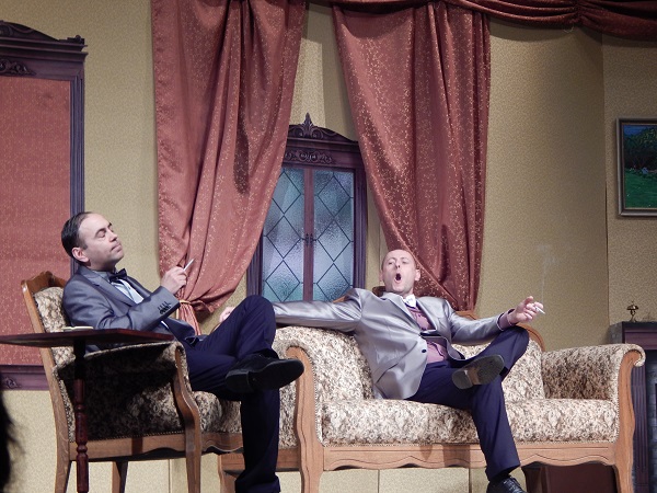 A három férfi – köztük a színésznő vőlegénye - meglepődve konstatálja, hogy a művésznő éppen egy fénykorán már jócskán túljutott, ismert színésszel múlatja az időt. Hogyan is lehet megoldani egy ilyen bonyolult helyzetet a lehető legminimálisabb károkozással? Természetesen egy drámaíró segítségével. A 2011-ben létrejött pápai S.K. Társulat alapító tagja, M. Varga Veronika ebbe a történetbe szeretett bele első olvasásra, majd addig győzködte társait, mígnem sikerült rávenni őket, állítsák színpadra e méltán elismert remekművet. Elsőként március 28-án Celldömölkön a Kemenesaljai Művelődési Központ és Könyvtár Színháztermében láthatta a nagyérdemű az S.K. Társulat színészeit e darab szerepeiben. A két felvonásban előadott anekdota elnyerte a nézők tetszését, a premier után tolmácsolásukban a térség több településére is megérkezik a közeljövőben Molnár Ferenc klasszikusa.