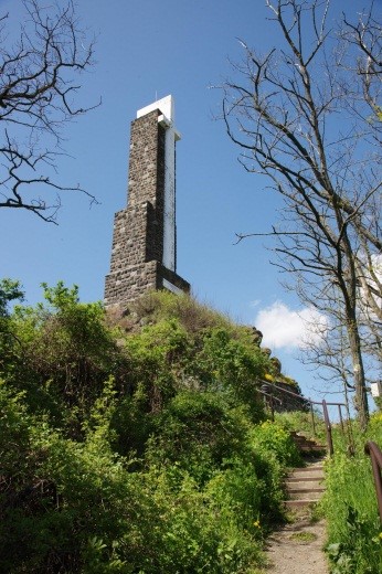 Ság hegy a kráterével és a Trianoni emlékkereszttel