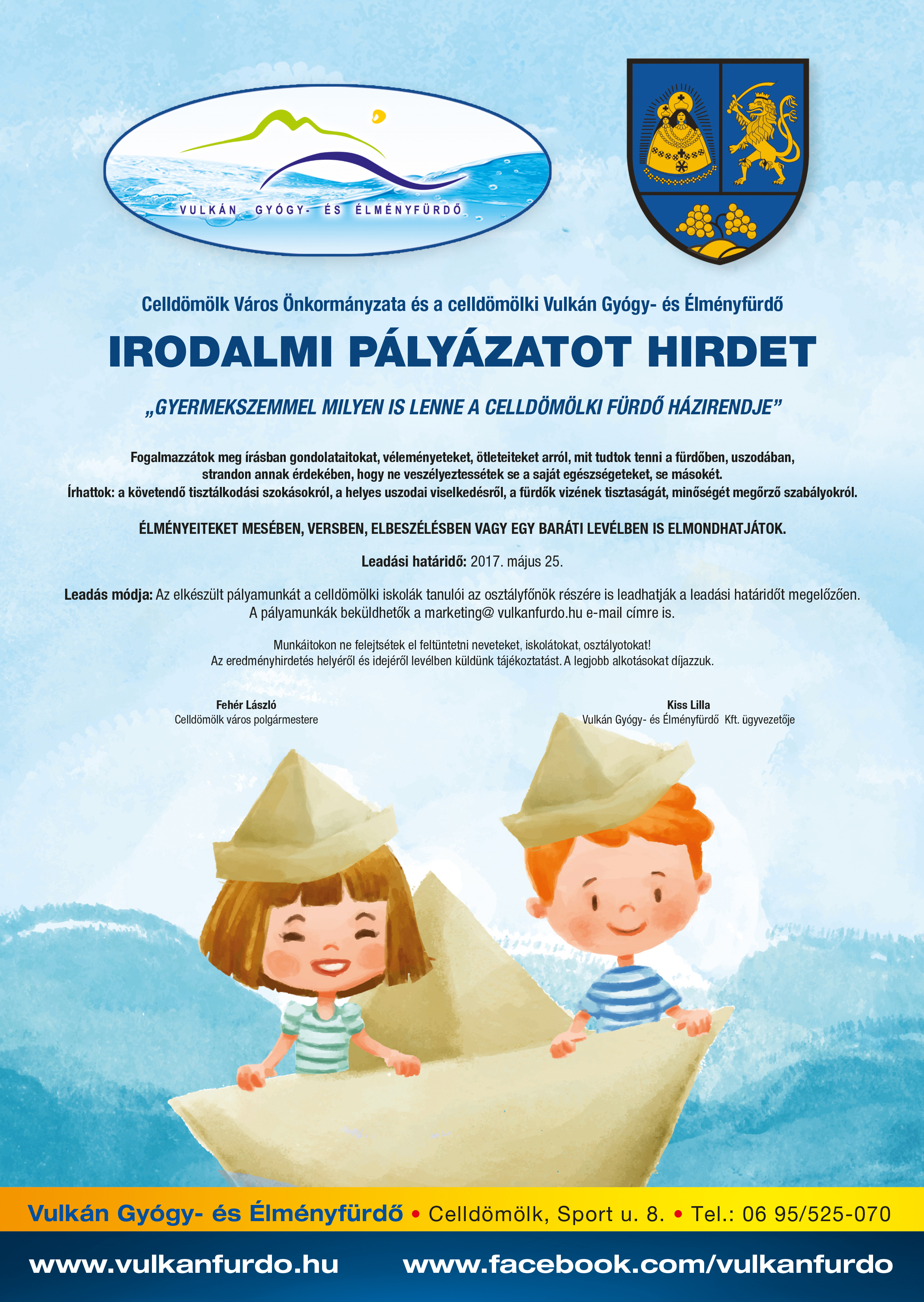 Celldömölk Város Önkormányzata és a celldömölki Vulkán Gyógy- és Élményfürdő Irodalmi pályázatot hirdet "Gyermekszemmel milyen is lenne a celldömölki fürdő házirendje" címmel.