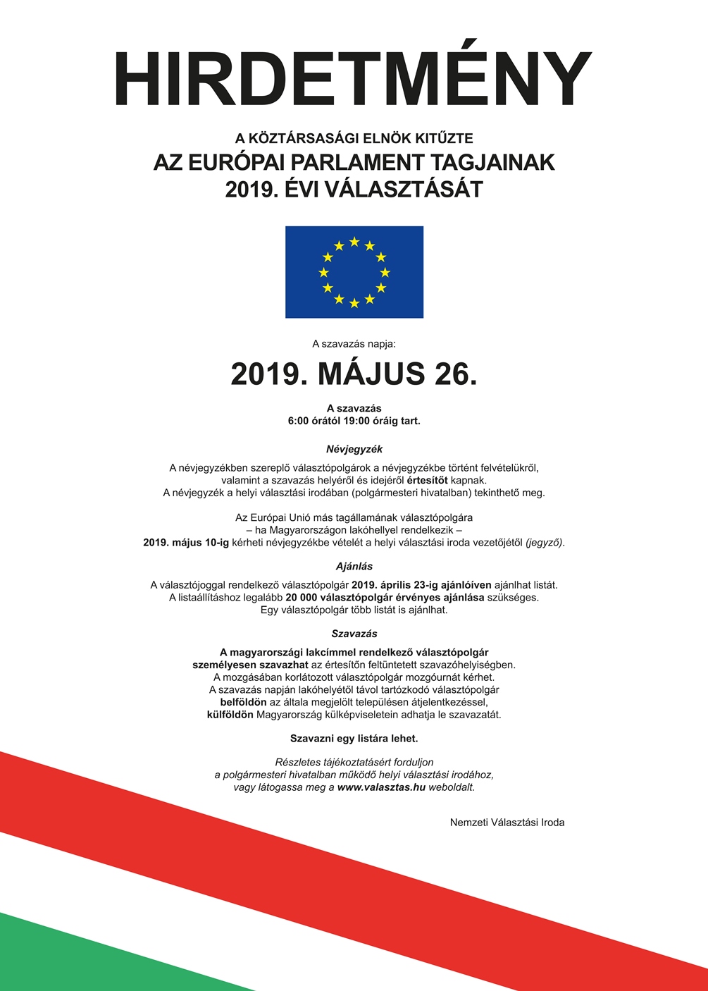 Bővebb információ : http://www.valasztas.hu/ep2019
